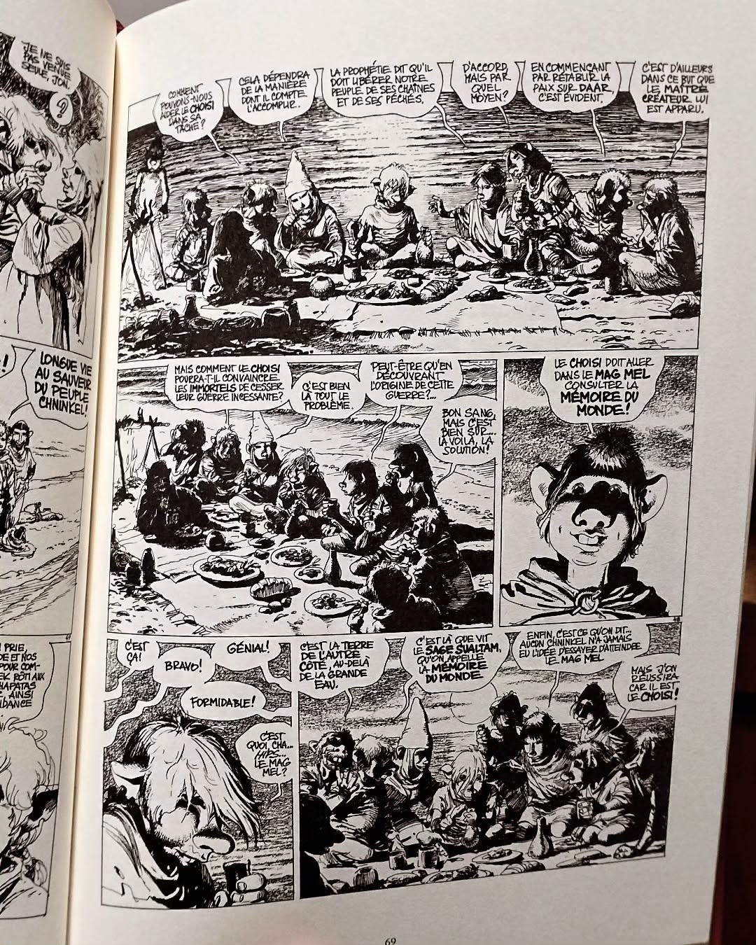 Relecture à peine déguisée du Nouveau Testament (« Le Commandement », « Le Choisi », « Le Jugement », on a fait plus subtil comme références cachées), puisant autant dans l’univers de Tolkien que dans celui de Kubrick, ce Chninkel est un petit bijou de fantasy qu’on aurait tort de zapper. Surtout dans ce joli format intégral en noir et blanc où le dessin de Rosiński gagne en supplément d’âme ce qu’il perd en couleur, pendant que Van Hamme lâche un peu les chevaux, renvoyant Thorgal au rang d’aimable facétie pour gamins.