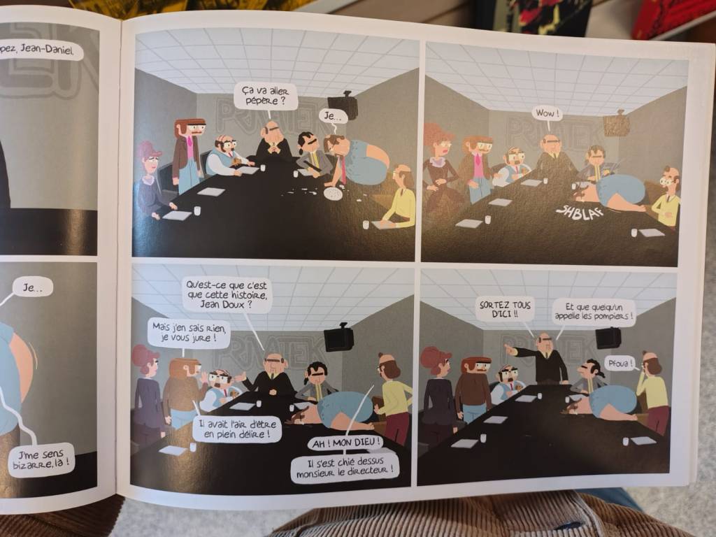 Jean-Doux et le mystère de la disquette molle, c’est Indiana Jones et la dernière cartouche d’imprimante, c’est Les Aventuriers de la RTT perdue, une BD au concept aussi foutraque que génial, où l’insignifiant Jean-Doux, responsable juridique d’une entreprise spécialisée dans les broyeuses à papier, tente de déjouer les plans machiavéliques d’un super-méchant à la recherche du Graal ultime : la déchiqueteuse niveau 8, si puissante qu’elle est capable de percuter l’espace-temps. Mythique. Aussi mythique que cette petite trouvaille qu’on ne se lasse pas de lire et relire.