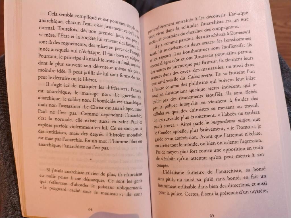 La bonne nouvelle, c’est que ce bouquin date de 1976. Il y a peu de chances qu’il se retrouve entre les doigts boudinés d’un de ces “chroniqueurs” analphabètes qui entament généralement leur cacaprose par un tonitruant : “alors moi, je, personnellement, moi-même, je n’ai pas du tout aimé, moi personnellement, mais quand même merci aux éditions Ducon de m’avoir envoyé ce livre complètement inadapté à la taille de mon cerveau.” On imagine très bien le désarroi existentiel et le vide intersidéral qui s’étend entre leurs deux oreilles à la lecture laborieuse de quoi que ce soit d’autre qu’une liste de courses, la notice du mixeur ou le dernier Mélissa Da Costa (en dernière position sur cette liste, par intérêt décroissant). Bref, de toute autre chose qu’un auteur du calibre d’Ernst Jünger. Non, Eumeswil n’est pas du tout un bouquin facile. À la manière d’un Jacques Abeille de l’autre côté de la ligne Maginot, Jünger y décrit une étrange contrée sous le joug du Condor, tyran éclairé et prétexte idoine (ce n’est pas un gros mot, au contraire de Freida McFadden) à d’improbables digressions politico-philosophiques. C’est parfois un poil imbitable (toujours pas un gros mot) mais on savait où on mettait les doigts.