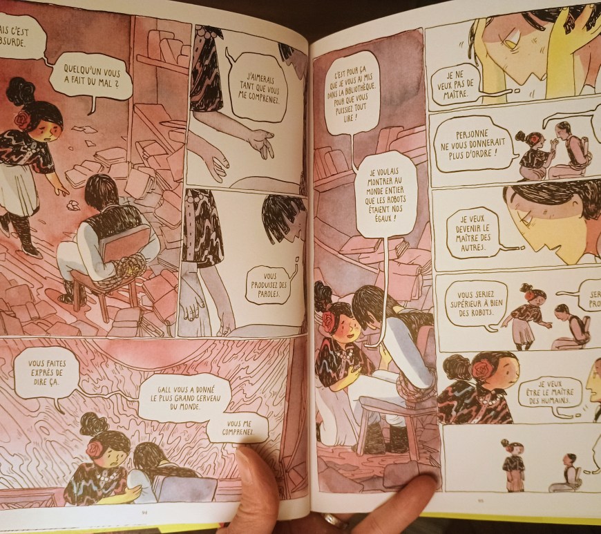 La double qui veut être le maître des humains. Pas forcément évident d’adapter en bande dessinée le texte légendaire de Karel Čapek — légendaire parce que l’écrivain tchèque y invente le terme robot. Robot, du tchèque robotovat, que l’on pourrait très approximativement traduire par “travailler pour son maître” dans sa version originale, avant que le mot ne soit largement galvaudé pour désigner le travail mécanique … Continue reading Kateřina Čupová (d’après Karel Čapek) “R.U.R. Le soulèvement des robots” (Glénat)