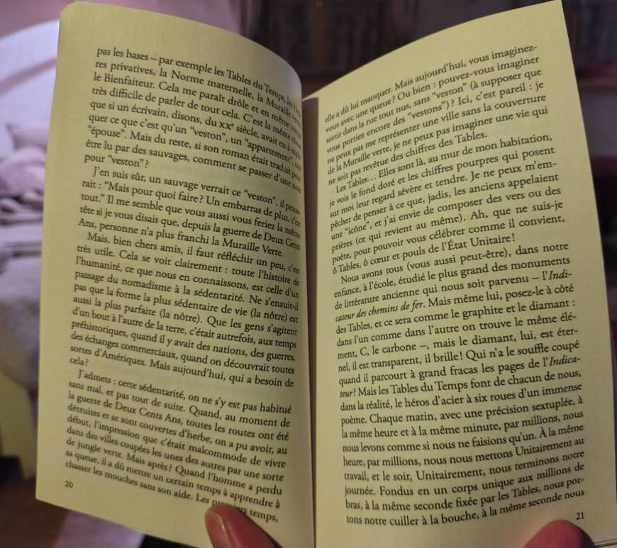 La double qui a le souffle coupé quand elle parcourt à grand fracas l’indicateur des chemins de fer. Prem’s. Premier, d’abord (bien longtemps avant Huxley et Orwell), à avoir créé un monde parfait, si parfait qu’il ne tarde pas à se craqueler dans tous les sens alors que les Numéros qui le peuplent commencent à sentir des fourmis dans les jambes. En revanche, comme Dostoïevski … Continue reading Evgueni Zamiatine “Nous” (Babel)